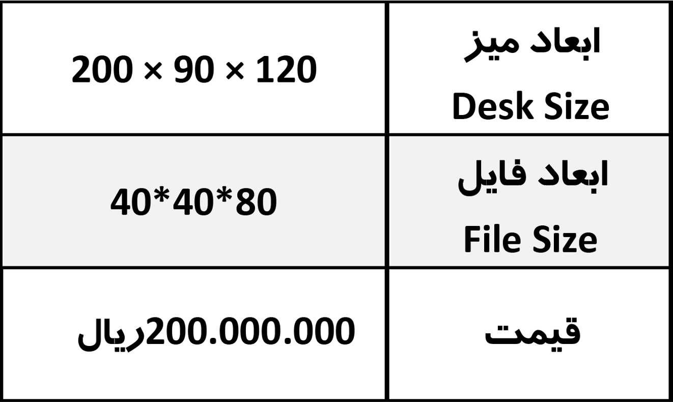 ابعاد میز 200*90*120