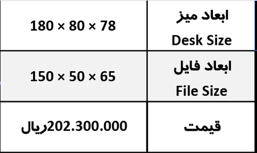ابعاد میز 180*80*78
